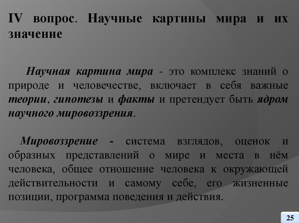 IV вопрос. Научные картины мира и их значение