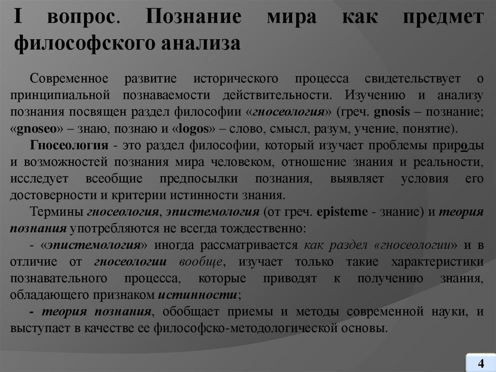 I вопрос. Познаниефилософского анализа