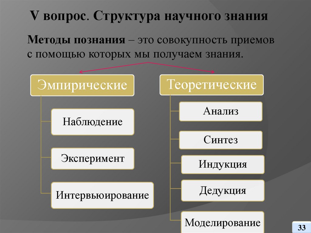 V вопрос. Структура научного знания