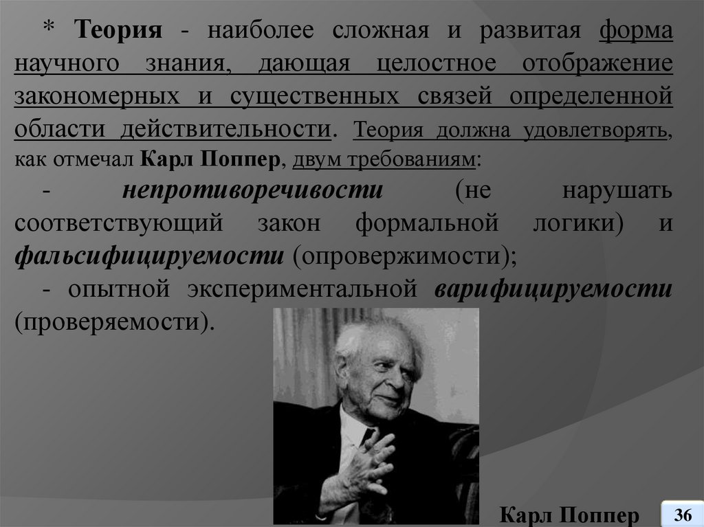 как отмечал Карл Поппер, двум требованиям: