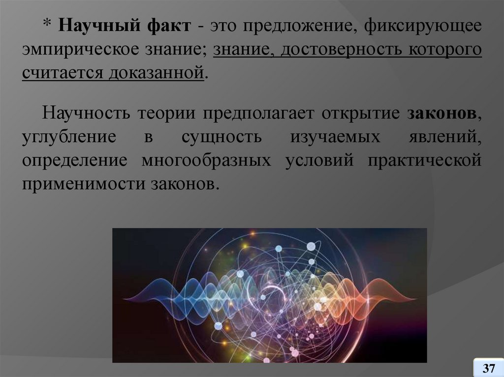 * Научный факт - это предложение, фиксирующееэмпирическое знание; знание, достоверность которого
