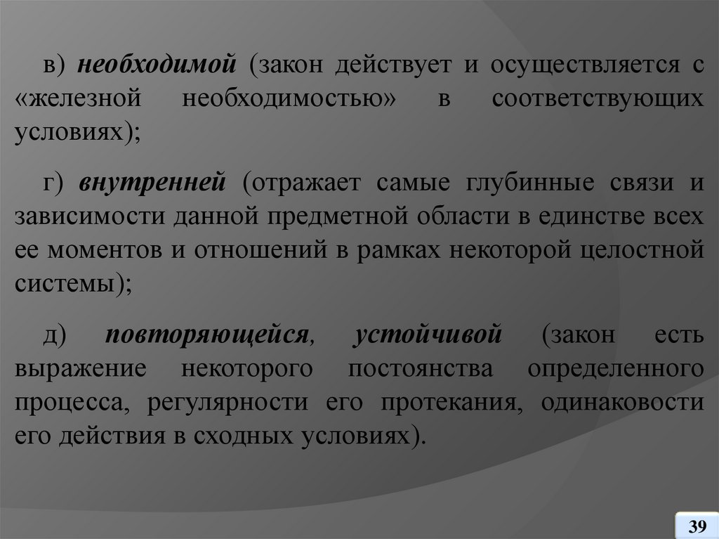 в) необходимой (закон действует и осуществляется с«железной необходимостью» в соответствующих