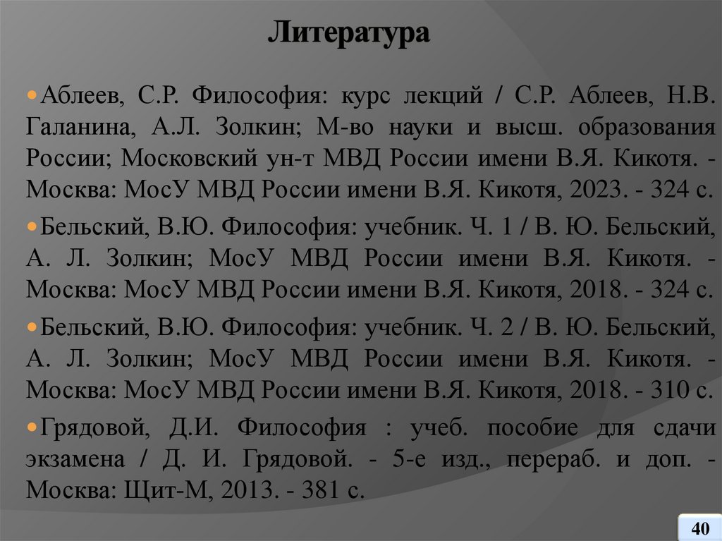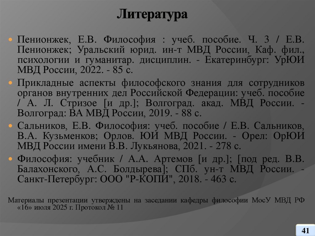 Материалы презентации утверждены на заседании кафедры философии МосУ МВД РФ