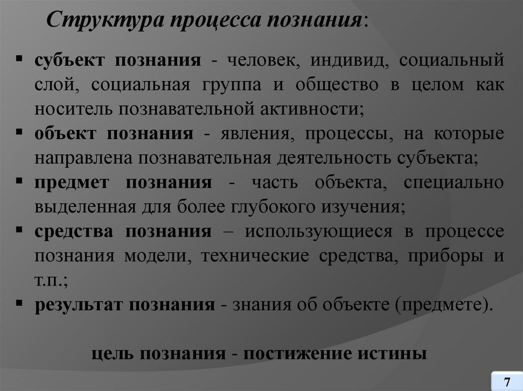 познавательного процесса, которые приводят к получению знания,