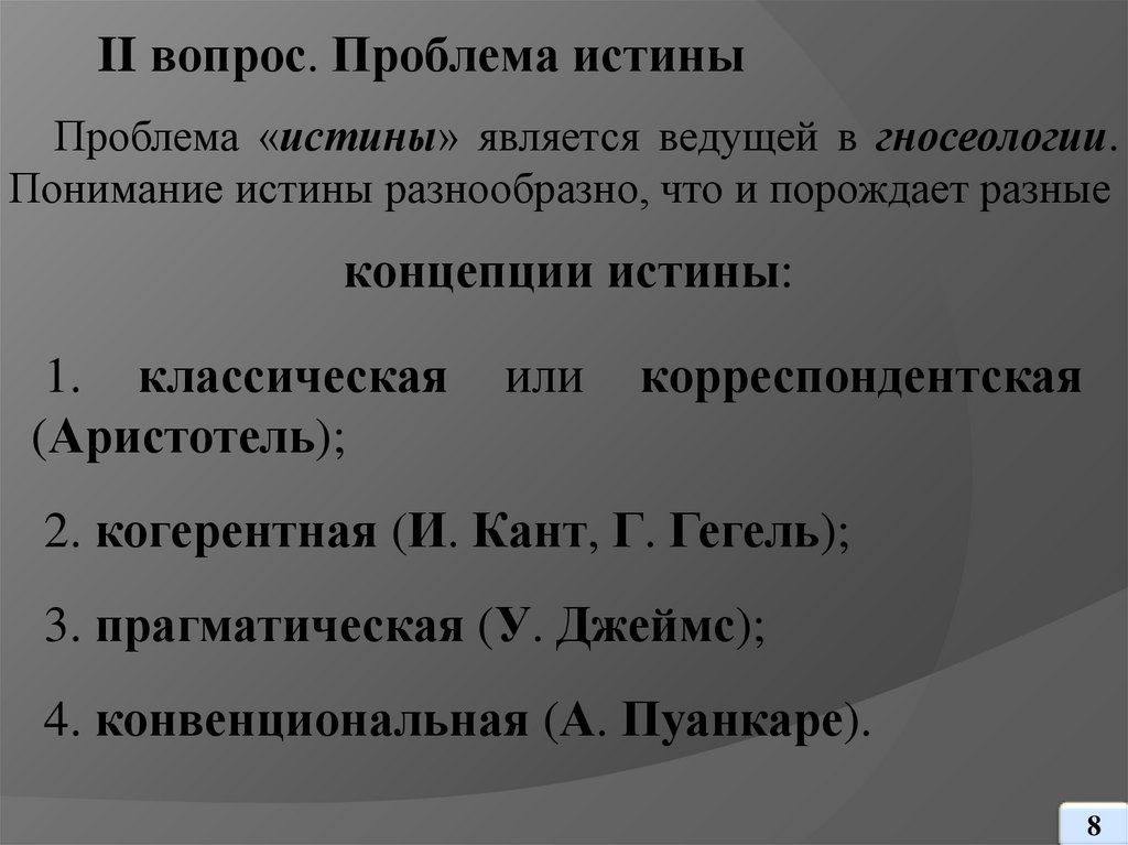 II вопрос. Проблема истины