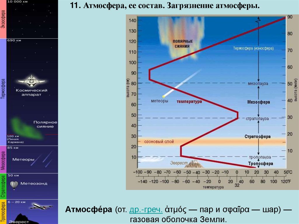 11. Атмосфера, ее состав. Загрязнение атмосферы.Атмосфе́ра (от. др.-греч. ἀτμός — пар и σφαῖρα — шар) —