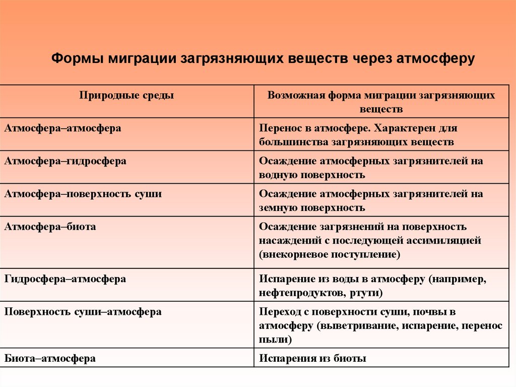 Формы миграции загрязняющих веществ через атмосферуПриродные среды