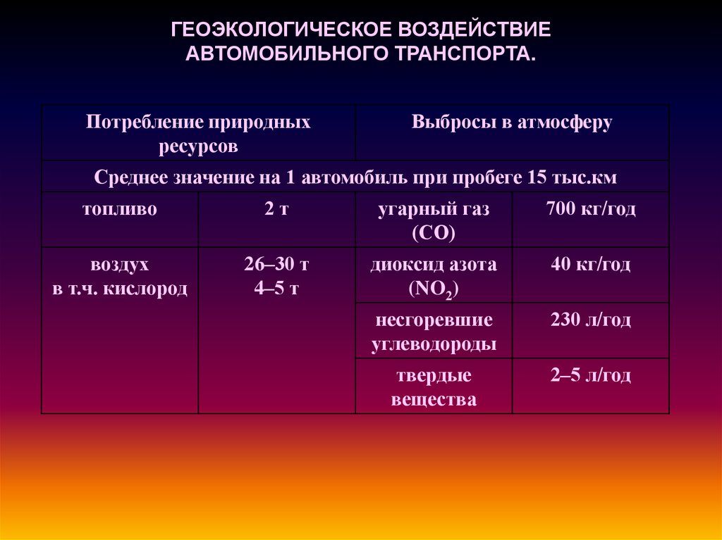 ГЕОЭКОЛОГИЧЕСКОЕ ВОЗДЕЙСТВИЕАВТОМОБИЛЬНОГО ТРАНСПОРТА.
