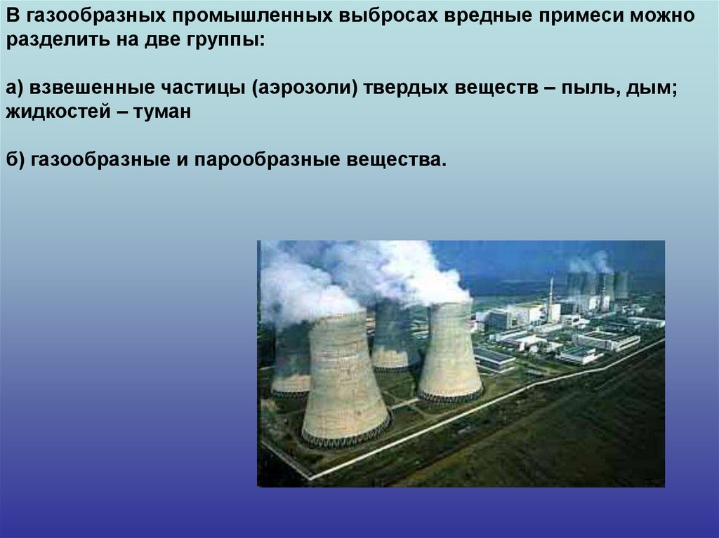 В газообразных промышленных выбросах вредные примеси можноразделить на две группы: