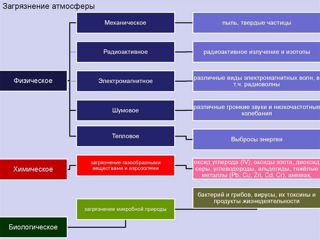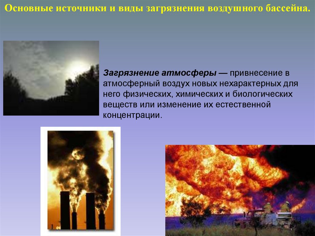 Основные источники и виды загрязнения воздушного бассейна.Загрязнение атмосферы — привнесение в