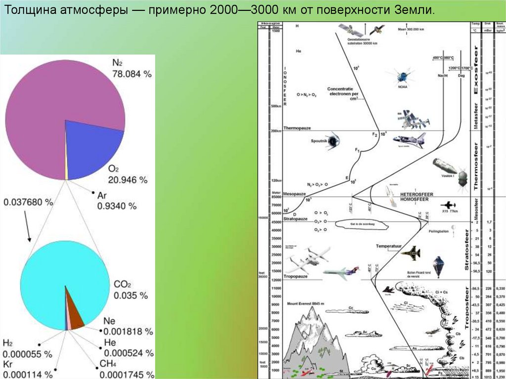 Толщина атмосферы — примерно 2000—3000 км от поверхности Земли.4.