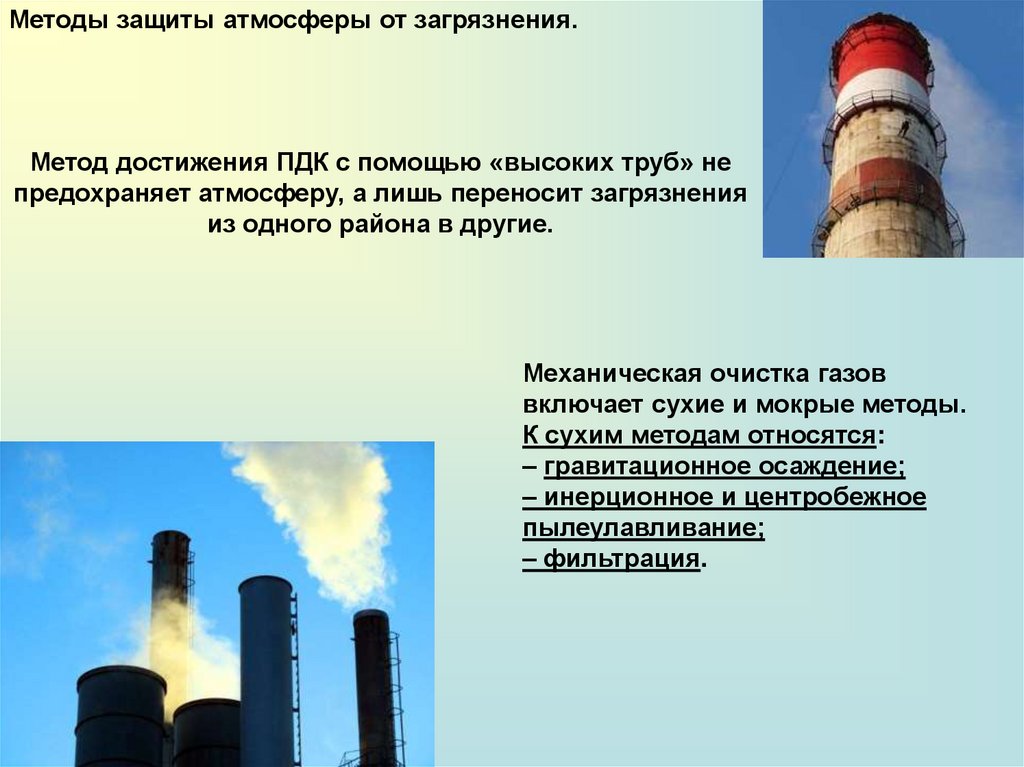 Методы защиты атмосферы от загрязнения.Метод достижения ПДК с помощью «высоких труб» не