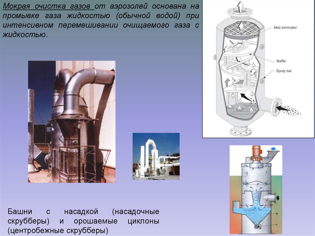 Мокрая очистка газов от аэрозолей основана напромывке газа жидкостью (обычной водой) при