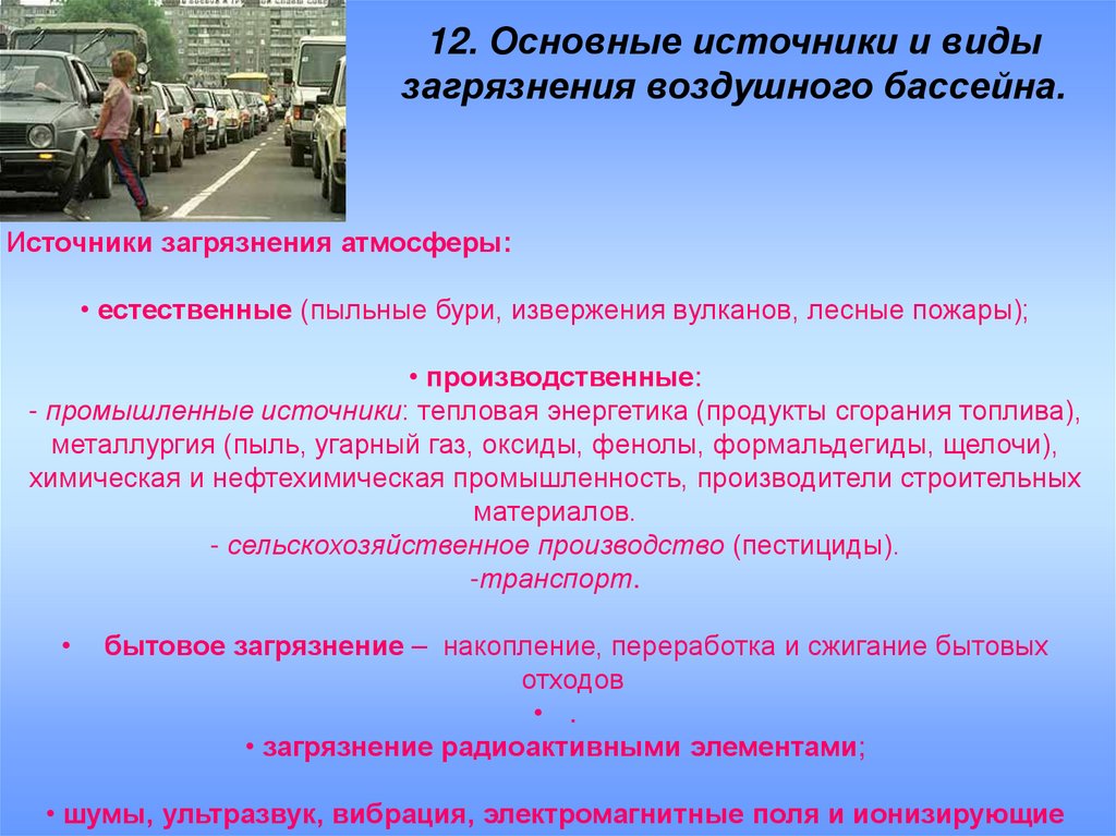 12. Основные источники и видызагрязнения воздушного бассейна.