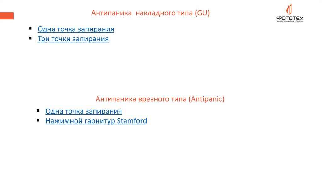 Стандартный комплект фурнитуры с нажимным гарнитуром