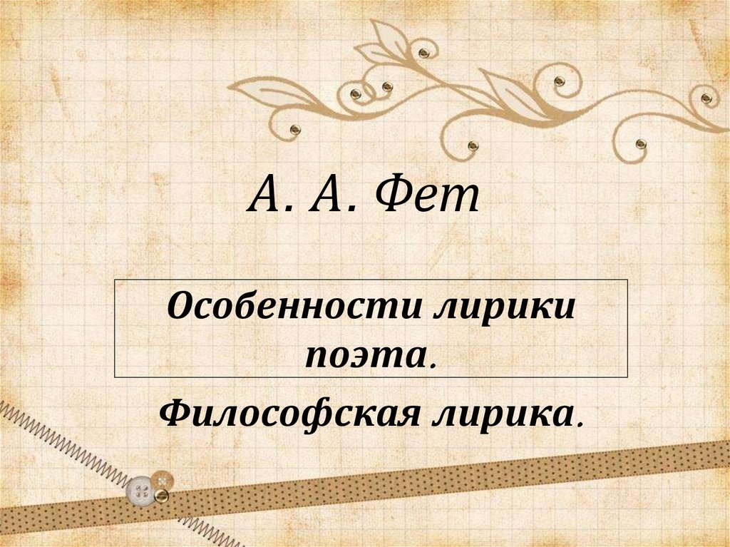 • Философия лирики А.А.Фета поклонение красоте жизни во всех её