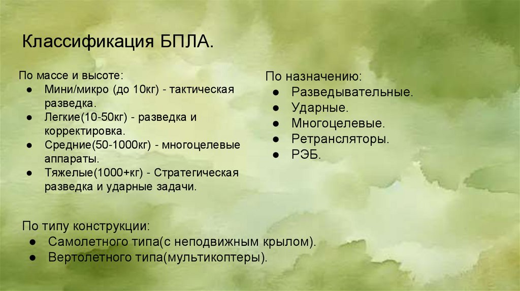 Назначения, задачи, организация иосновные ЛТХ БПЛА России.