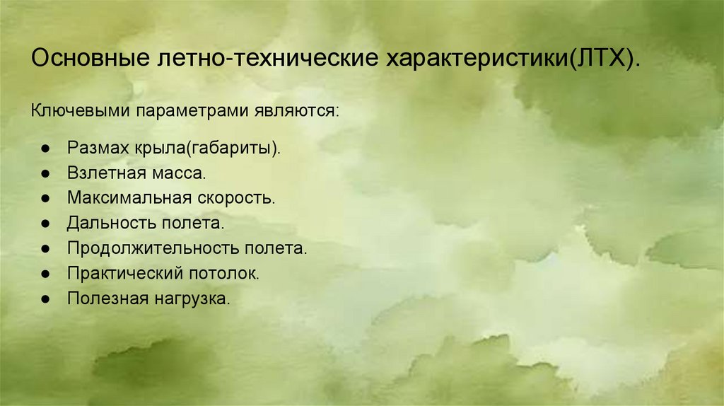 Основные летно-технические характеристики(ЛТХ).Ключевыми параметрами являются: