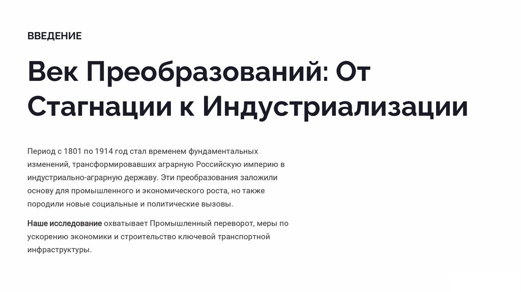 ВВЕДЕНИЕВек Преобразований: От