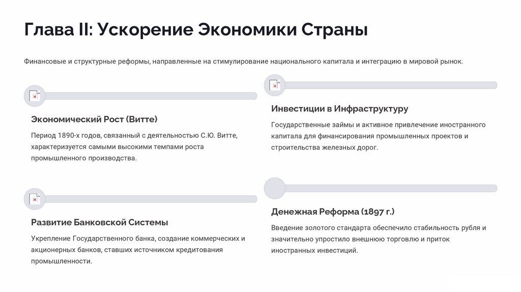 Глава II: Ускорение Экономики СтраныФинансовые и структурные реформы, направленные на стимулирование национального капитала и интеграцию в мировой рынок.