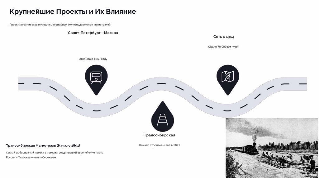 Крупнейшие Проекты и Их ВлияниеПроектирование и реализация масштабных железнодорожных магистралей.