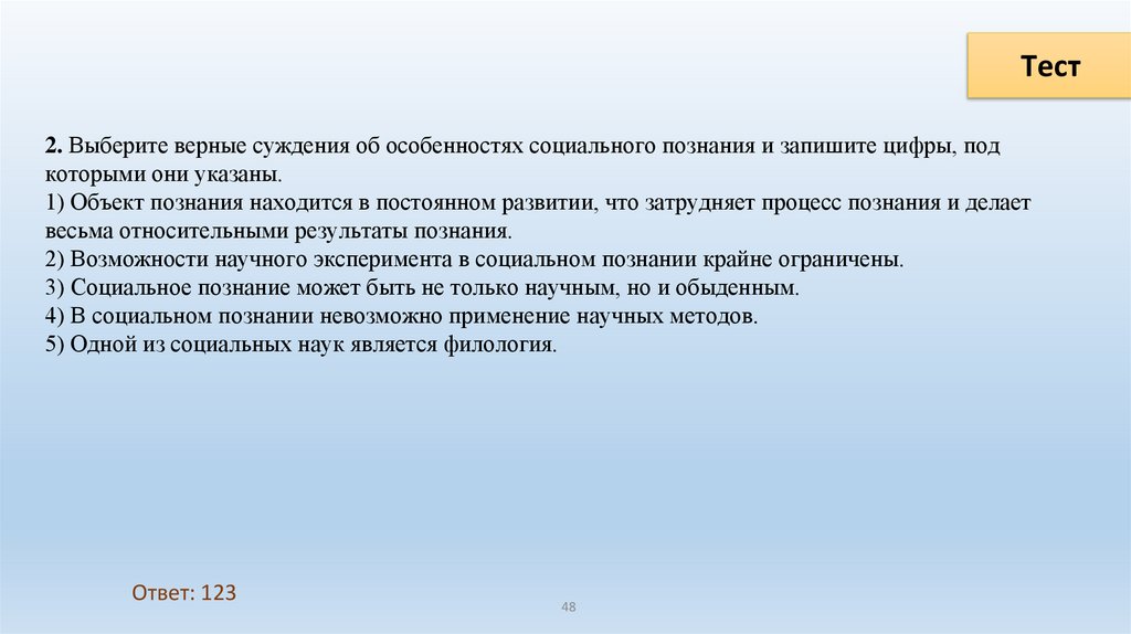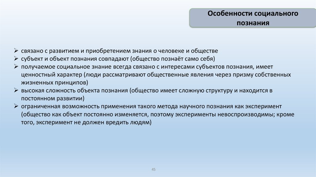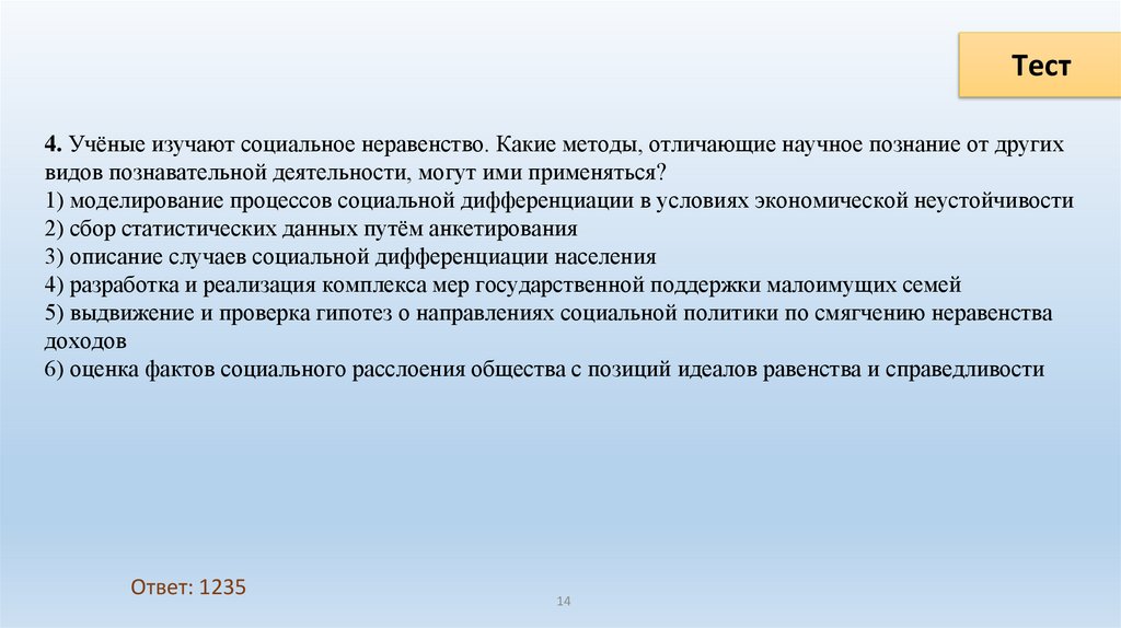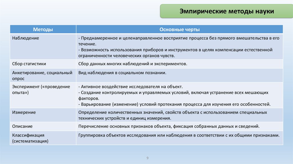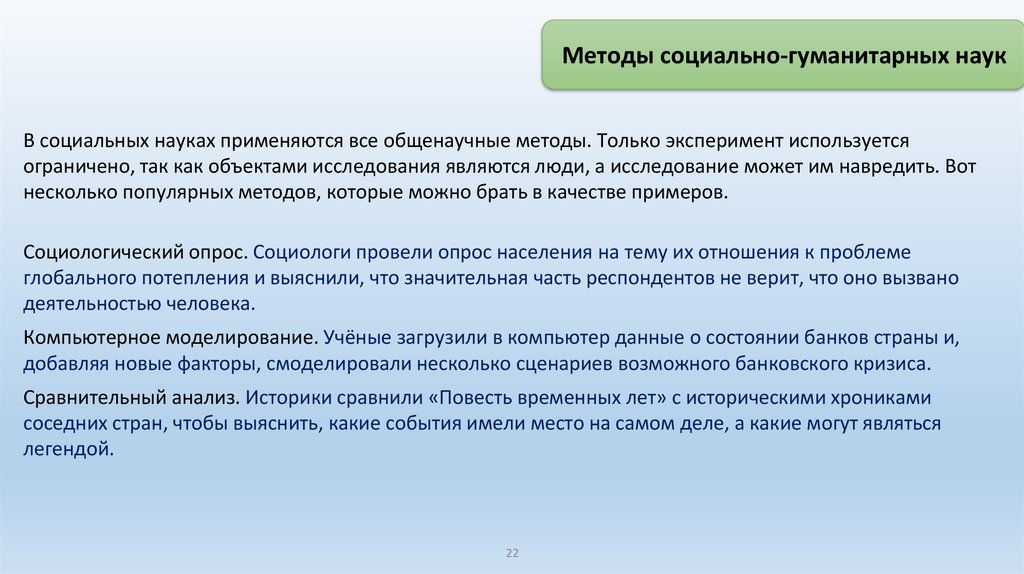 г) широко применяется научный эксперимент в отличие от социальных наук и т.д.
