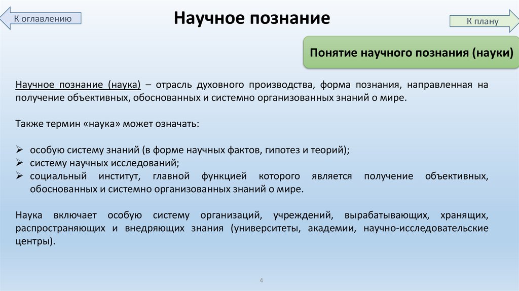 Научное познание (наука) – отрасль духовного производства, форма познания, направленная на