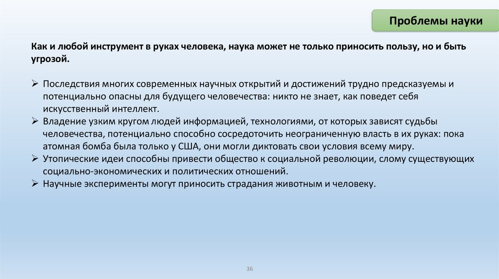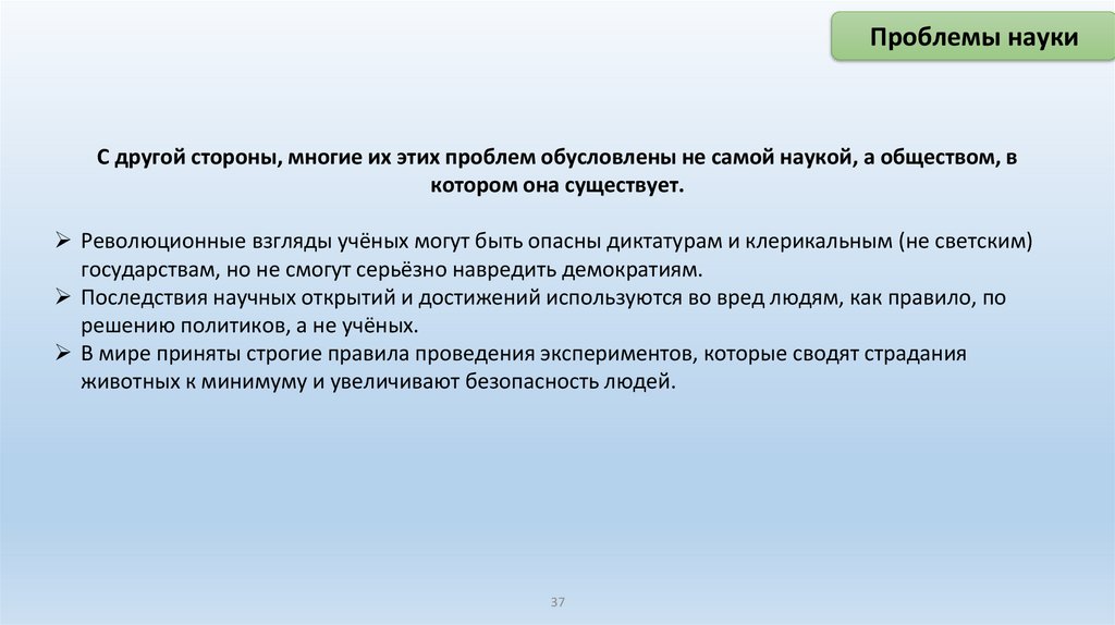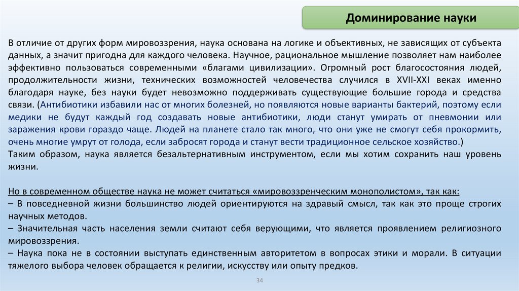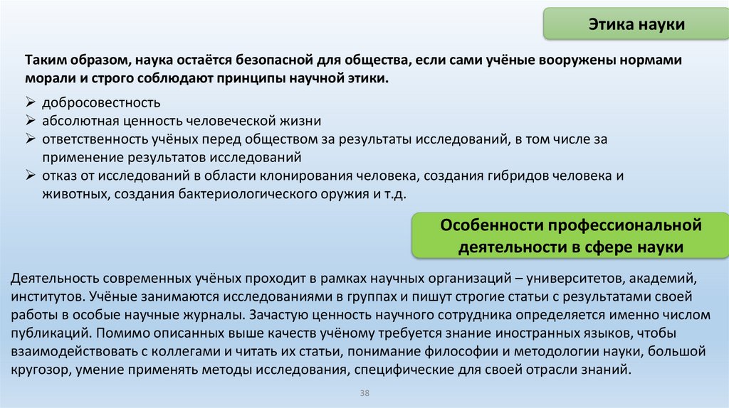 в) наука культивирует честность и объективность в стремлении к истине и т.д.