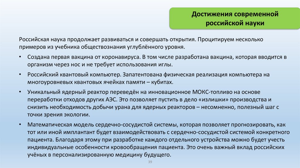 Возрастание роли науки в современном обществе. Направления научнотехнологического развития и научные достижения Российской