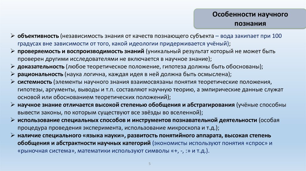 научное знание отличается высокой степенью обобщения и абстрагирования (учёные способны