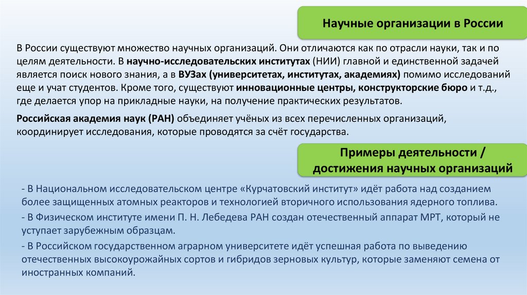 Наука включает особую систему организаций, учреждений, вырабатывающих, хранящих,