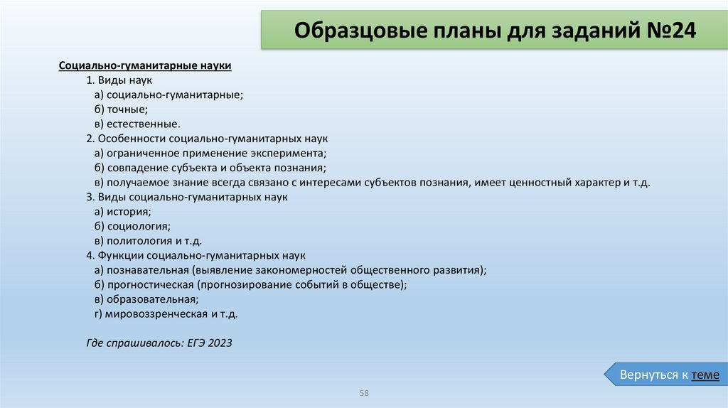 Образцовые планы для заданий №24Социально-гуманитарные науки