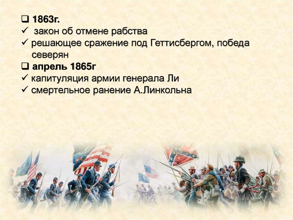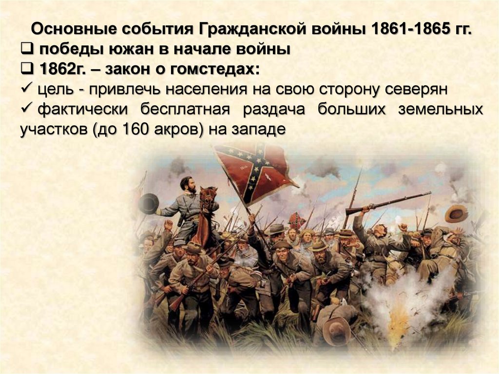 Основные события Гражданской войны 1861-1865 гг.победы южан в начале войны
