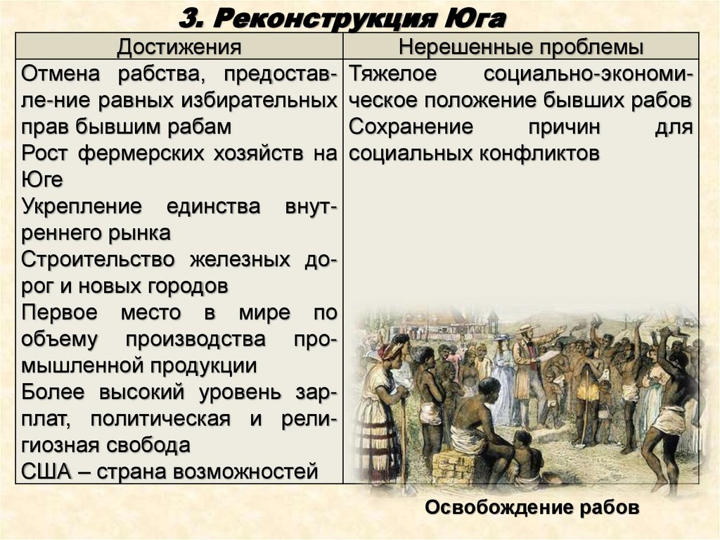 социально-экономиле-ние равных избирательных ческое положение бывших рабов
