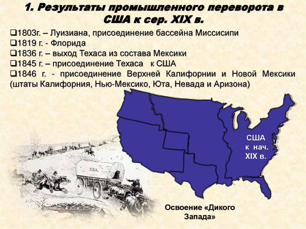 1. Результаты промышленного переворота вСША к сер. XIX в.