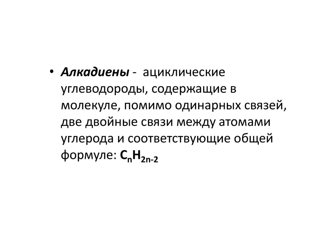 • Алкадиены - ациклическиеуглеводороды, содержащие в