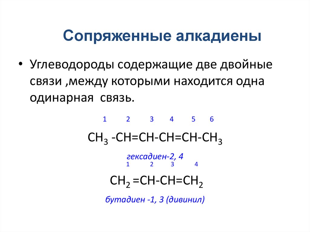 Сопряженные алкадиены• Углеводороды содержащие две двойные