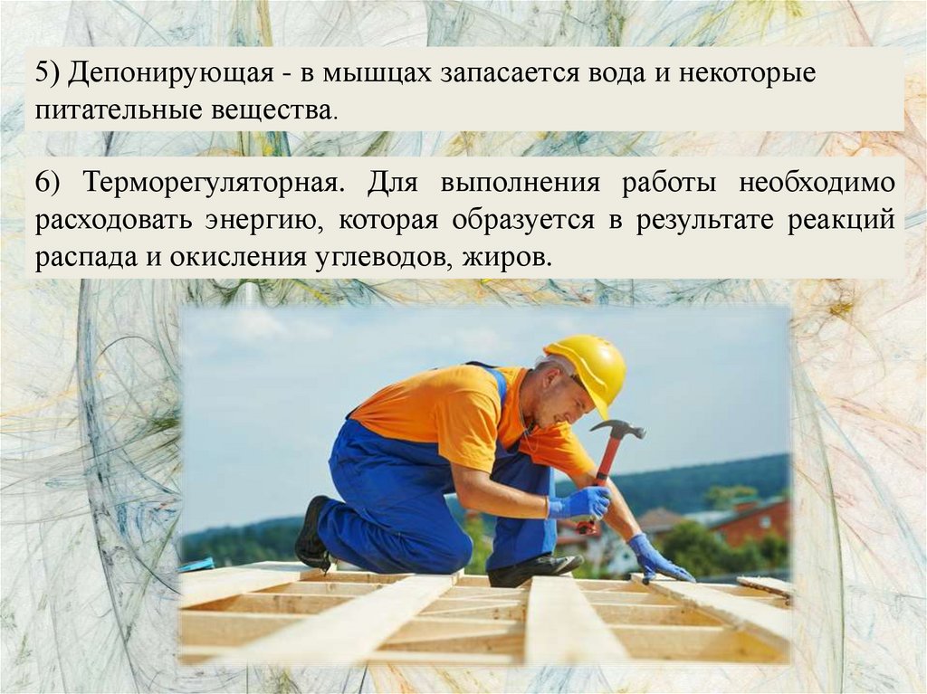 5) Депонирующая - в мышцах запасается вода и некоторыепитательные вещества.