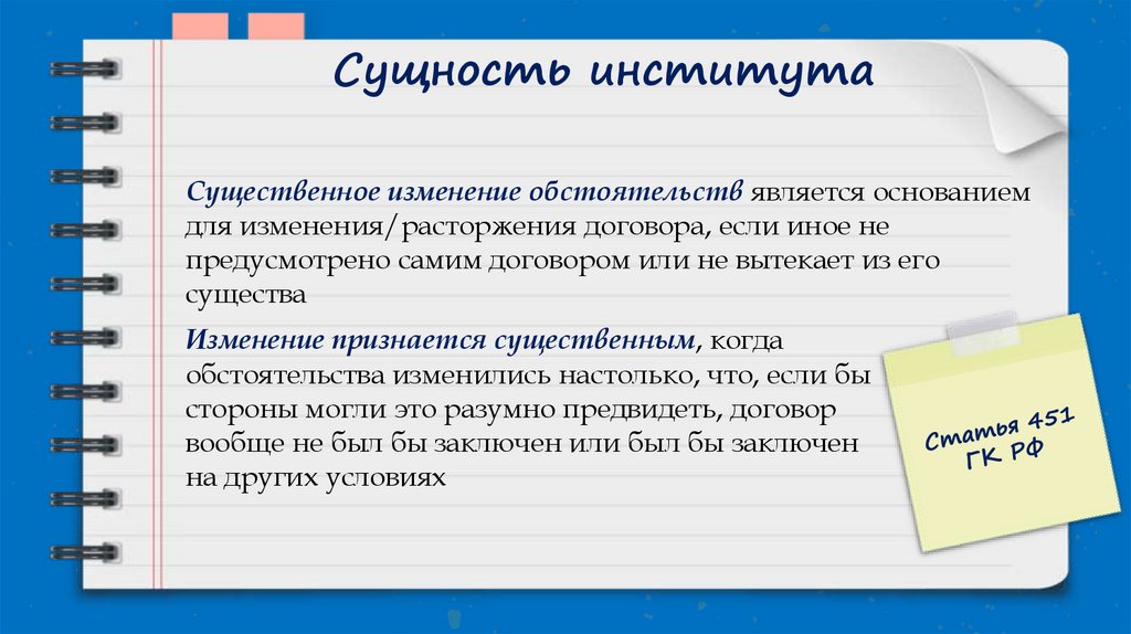 Сущность институтаСущественное изменение обстоятельств является основанием