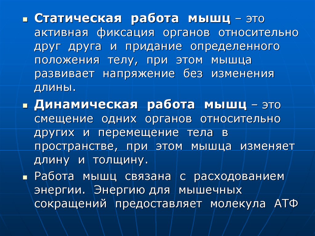 Статическая работа мышц – этоактивная фиксация органов относительно