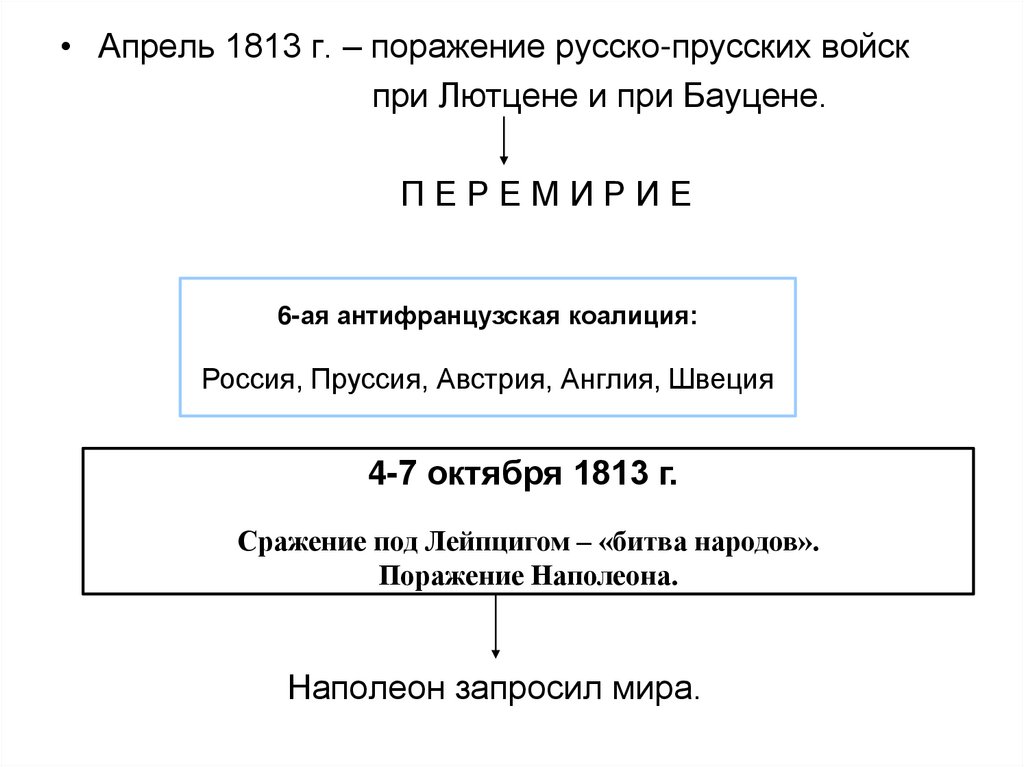 • Апрель 1813 г. – поражение русско-прусских войскпри Лютцене и при Бауцене.