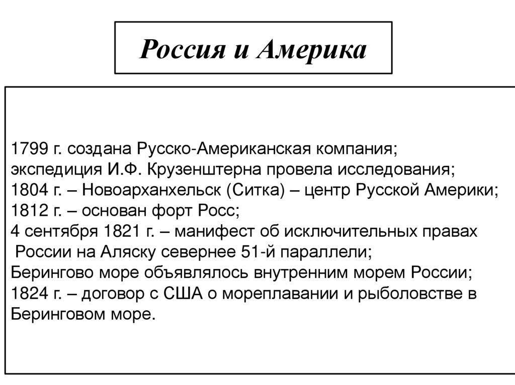 Россия и Америка1799 г. создана Русско-Американская компания;