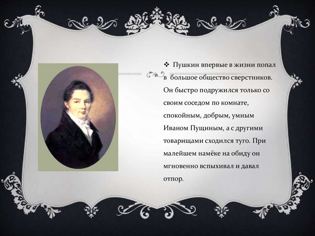 Пушкин впервые в жизни попалв большое общество сверстников.