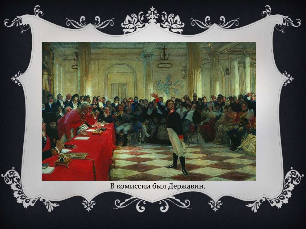 Л И Ц Е Й С К И Й З А Л . В ЭТ ОМ З А Л Е П У Ш К И Н Ч И ТА ЛПЕРЕД ДЕРЖАВИНЫМ СВОЕ СТИХОТВОРЕНИЕ