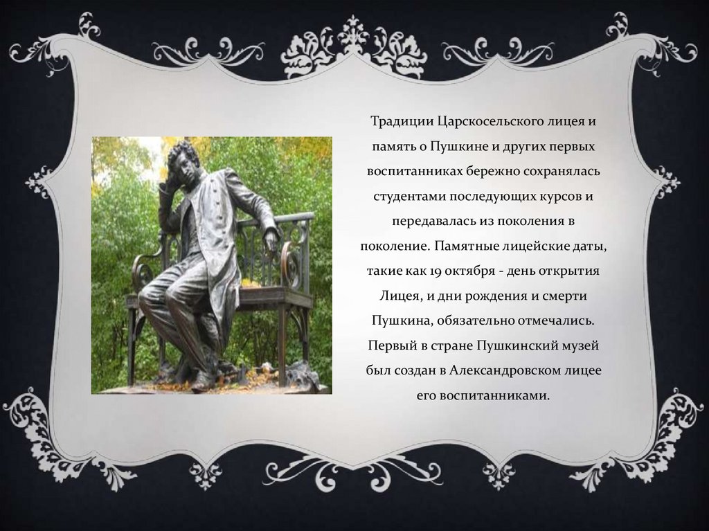 Традиции Царскосельского лицея ипамять о Пушкине и других первых