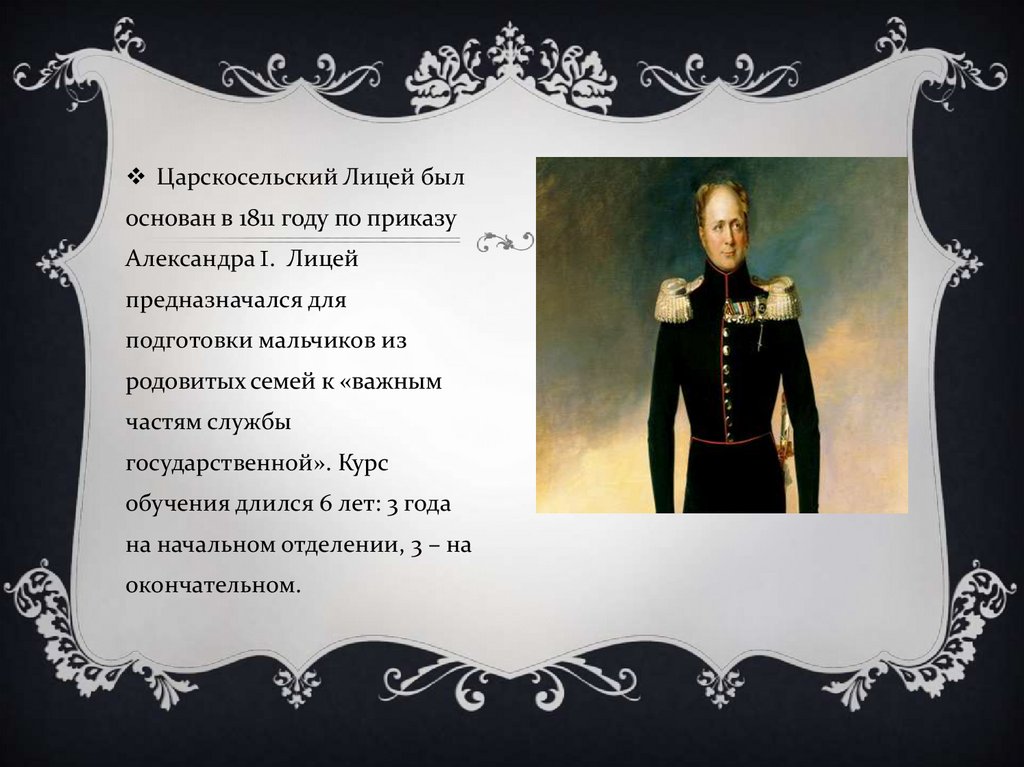 Царскосельский Лицей былоснован в 1811 году по приказу