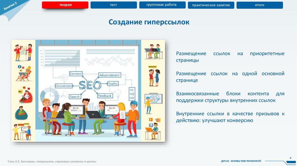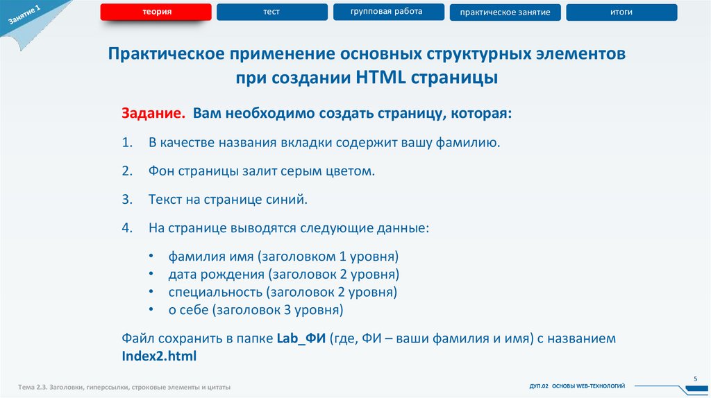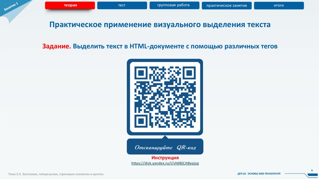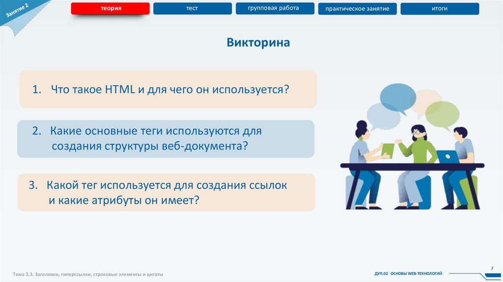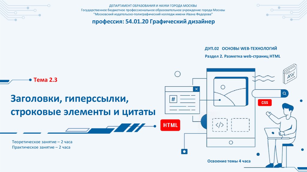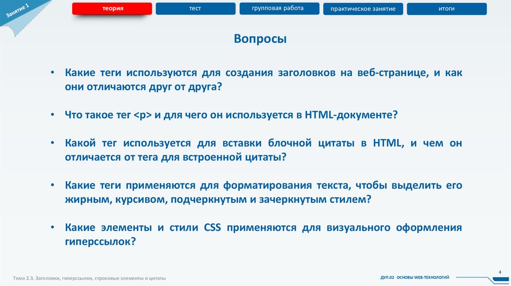 Тема 2.3. Заголовки, гиперссылки, строковые элементы и цитаты