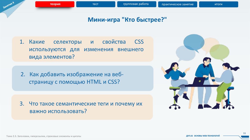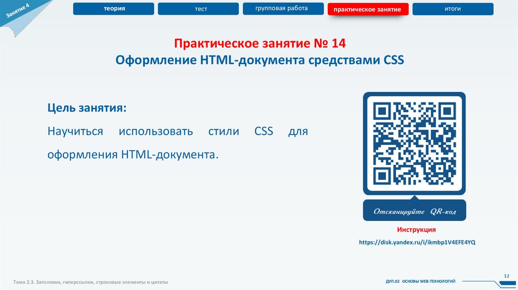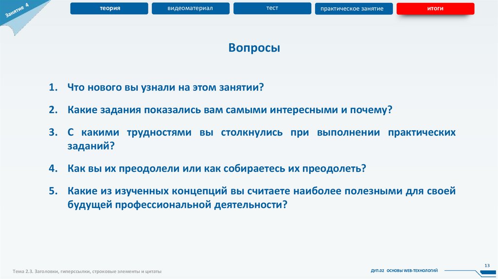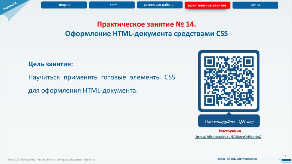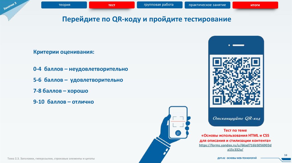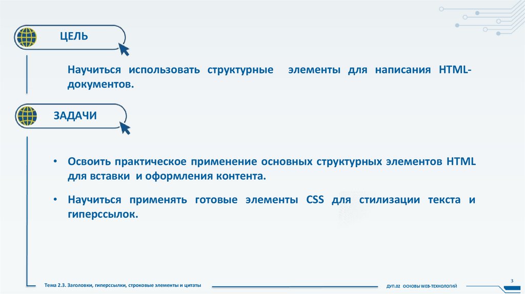 Тема 2.3. Заголовки, гиперссылки, строковые элементы и цитаты