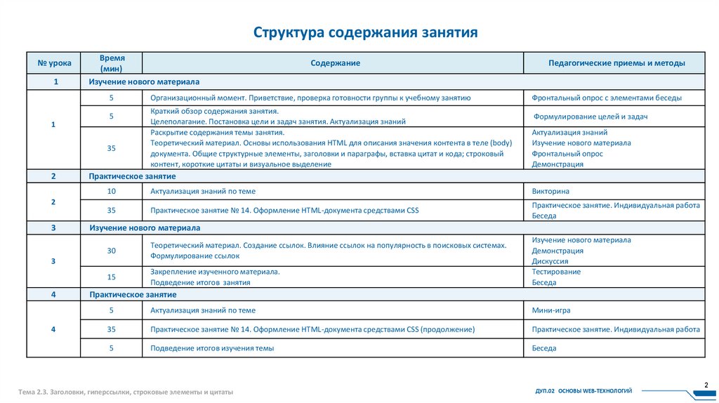 Структура содержания занятия№ урока