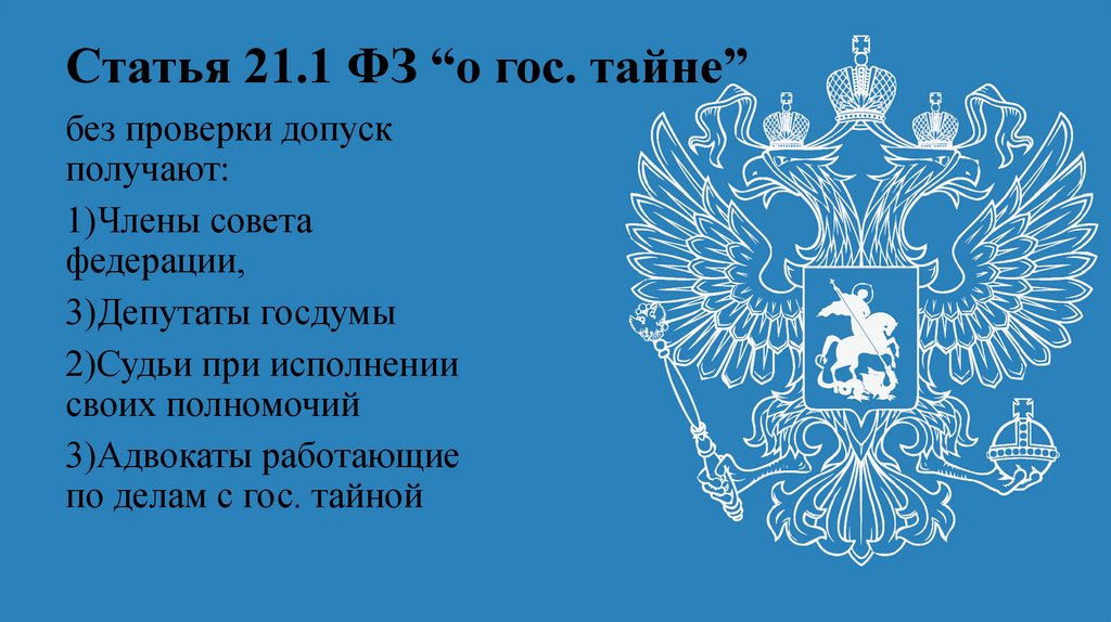 Статья 21.1 ФЗ “о гос. тайне”без проверки допуск